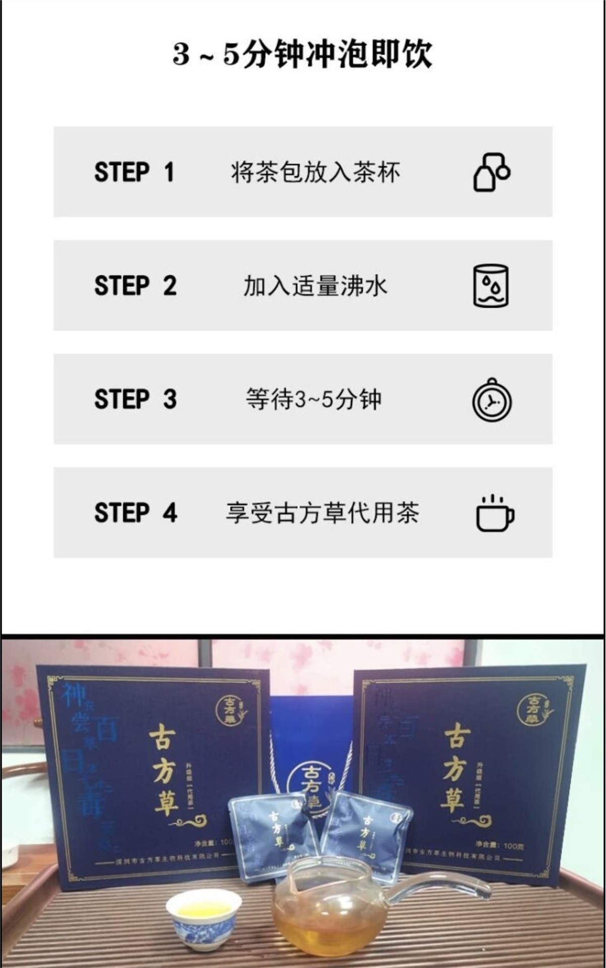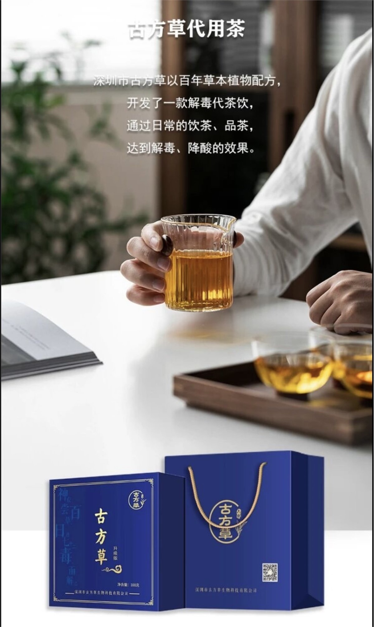 很多人不知道古方草的由来,首先解毒配方四十多年了,最开始是供戒毒所,和医院配合治疗癌症的,后来渐渐发现,很多病都可以调理好,大部分疾病都和毒相关然后做成了产品-解毒茶,以调理预防为主,这就是现在古方草的由来 因为过去只有条件好的人可以喝,现在开始做的是全国市场全系列产品,全民解毒的宏愿,一定是超低的价格,高品质,全方位解毒最后做成饮料,矿泉水,才能真正全民解毒,提高整个人的寿命5-10岁。 解毒原料 是采用纯天然草本植物(大部分药食同源),通过科学配伍、精心研制而成的,成品为粉末剂,味淡,无任何毒副作用。目前已知的功效有: 1、可解各类农药之毒。 2、可解生物中毒,如毒蘑菇、黄药;如蛇类及各种虫咬,均有奇效。 3、对许多病毒造成的病症,如鸡、鸭、猪瘟随便解除;对恶疮、无名肿毒,外敷,几日可愈。 4、对高血压、高血脂、梗塞、动豚硬化有明显的调理效果。 5、祛火毒,对中耳炎、牙痛、口腔溃疡、喉咙肿痛,茶即除。 另外,创伤外敷,止血、止痛、痊愈的效果显著。还可调胃肠炎,可立杆见影。许多因为毒素(病毒)引起的后遗症,也有很大的效果。只要是跟毒,病毒相关的,效果都是很显著。