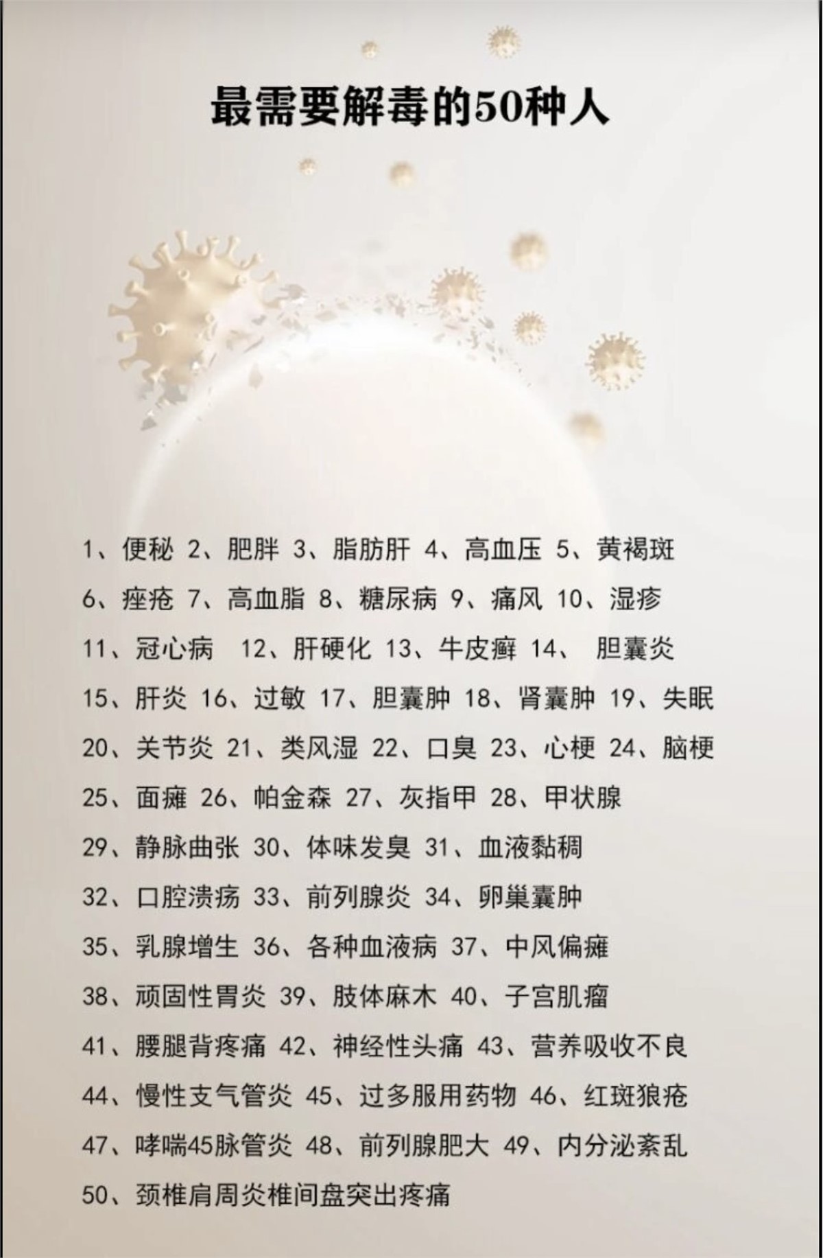因为过去只有条件好的人可以喝,现在开始做的是全国市场全系列产品,全民解毒的宏愿,一定是超低的价格,高品质,全方位解毒最后做成饮料,矿泉水,才能真正全民解毒,提高整个人的寿命5-10岁。